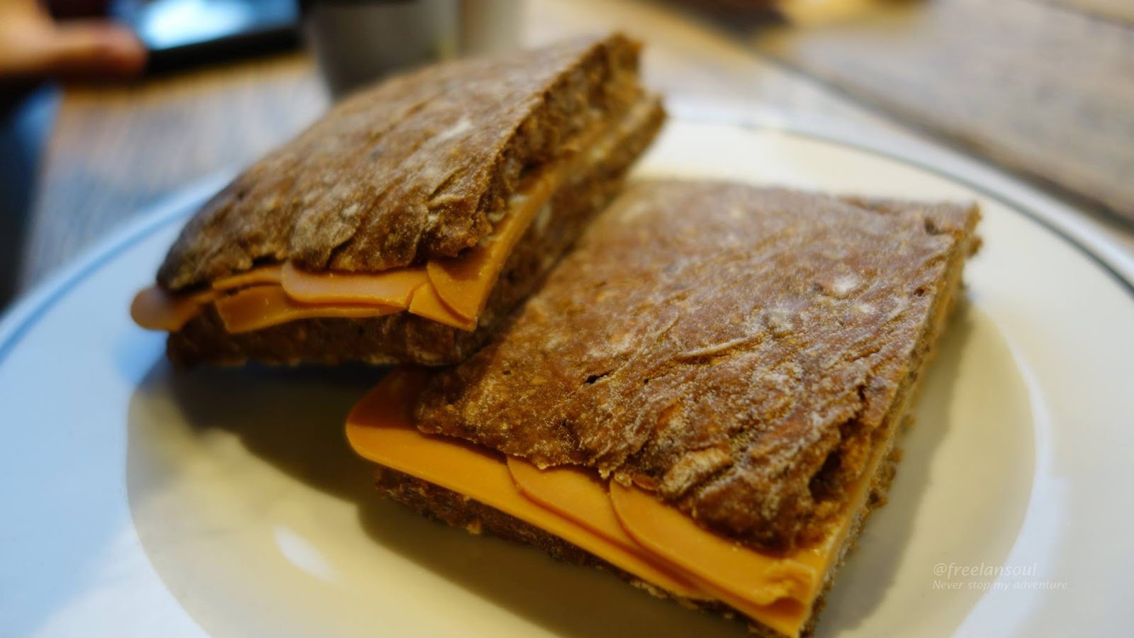 可是,冰凍的三文治卻叫人訝異,黑麥包內裡只夾著三片芝士。嗚嗚...明明餐牌上的照片顯示包裡應該有蕃茄 :(